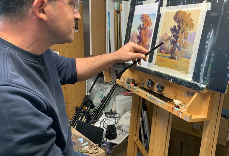 Ateliers de peinture en présentiel et en ligne, pour tous les niveaux et toutes les techniques.